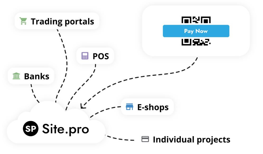 Be „Apmokėti dabar“ funkcijos, Site.pro integruojasi su e. prekybos platformomis, internetinėmis parduotuvėmis, bankais, kasos aparatais ir kitomis sistemomis.